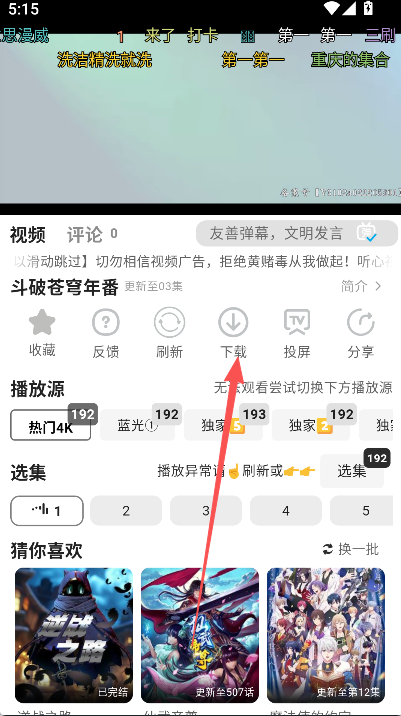 3、点击播放详情页面的下载选项。