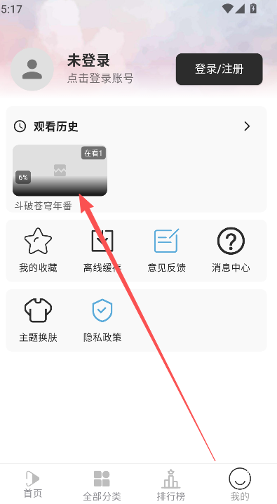 1、在我的页面,点击上方的观看历史播放。
