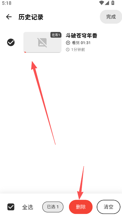 3、在此进行删除播放历史记录的操作。