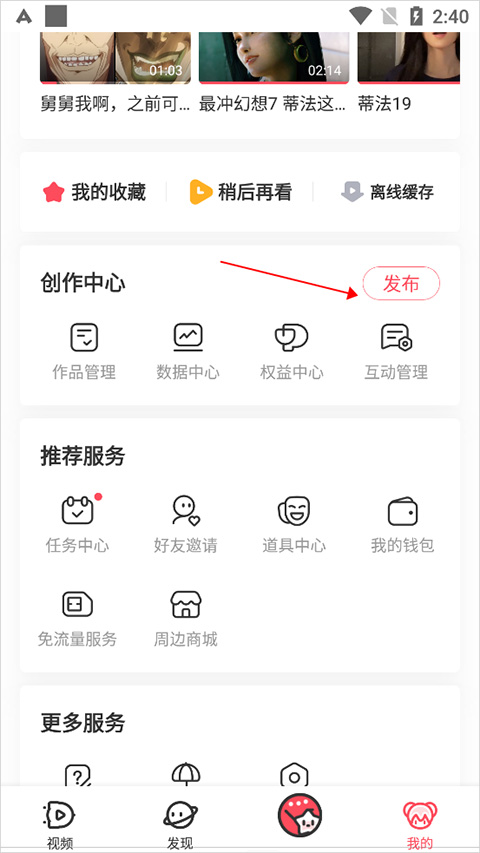 进入【我的】页面中创作中心处点击【发布】后选择相关投稿类型即可