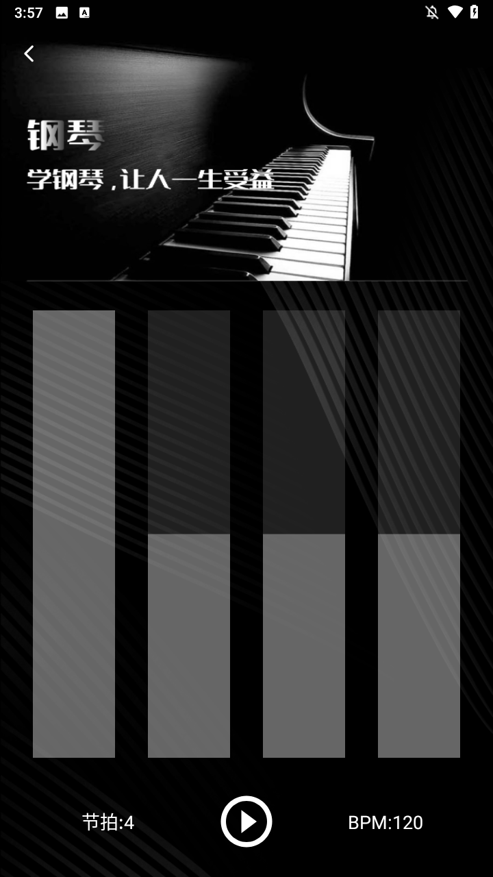 节拍器:自定义速度(如60-120bpm),帮助培养稳定节奏感,支持渐快/渐慢训练。
