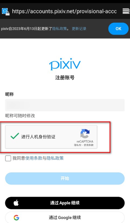 3.先勾选我同意使用条款与隐私政策,再点击开始。