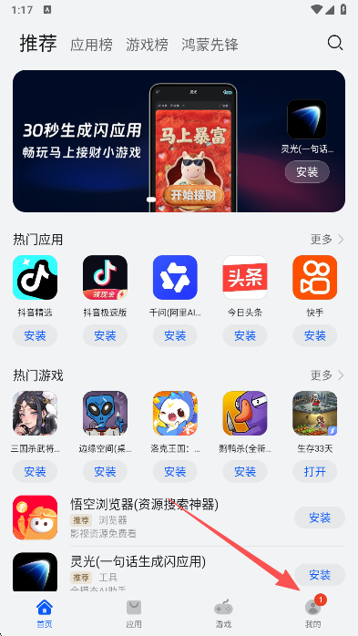 2、这里提供的就是鸿蒙应用了,您可以找到想要的进行安装