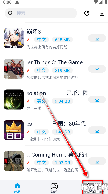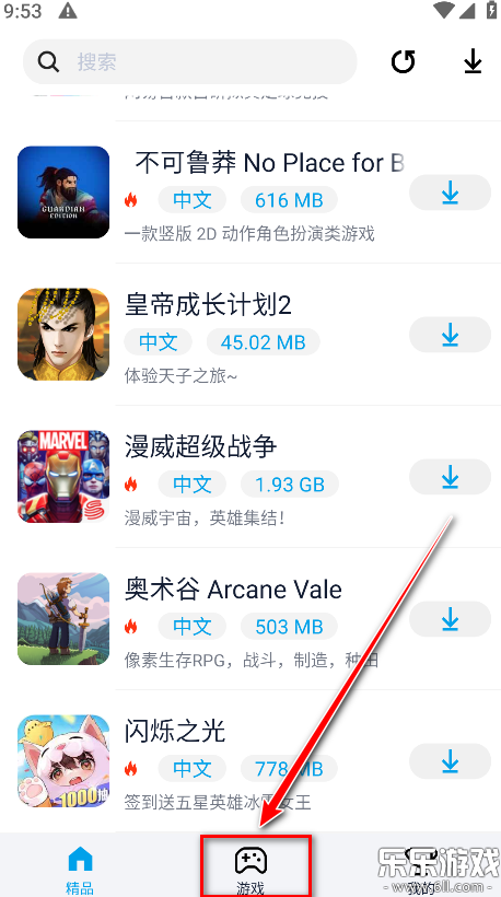 在首页的“精品”或“游戏”栏目中浏览推荐游戏。