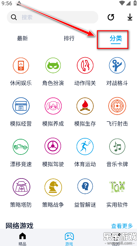 4.点击分类,会看到很多种不同类别游戏。