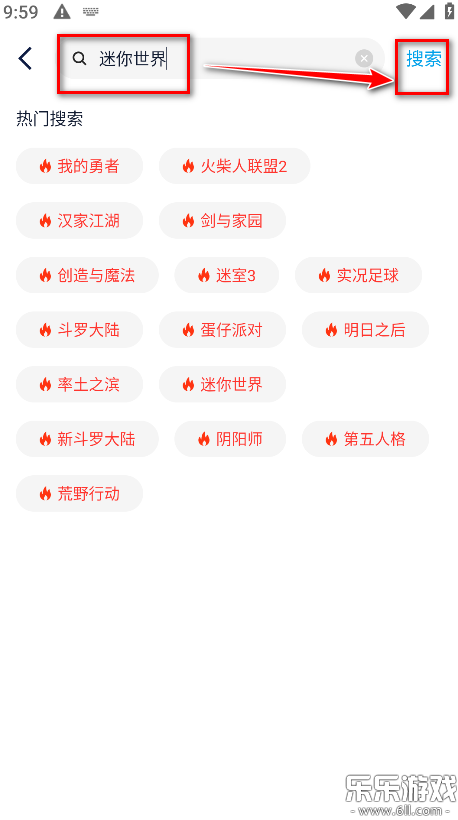 5.返回首页,点击上方的搜索框,直接输入自己想玩的游戏名称,然后点击搜索。