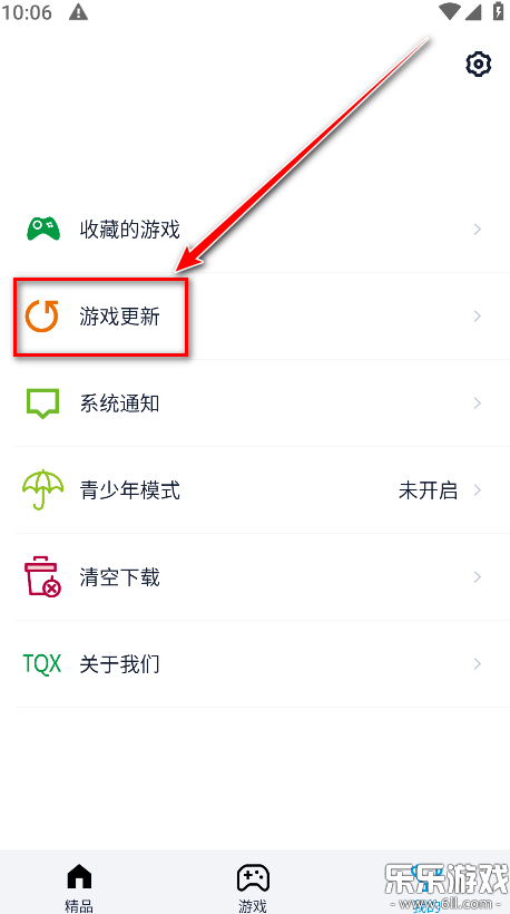 2.点击游戏更新。
