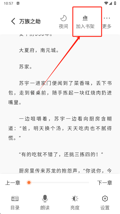4、在阅读页面,您可以点击加入书架,方便下次进入阅读