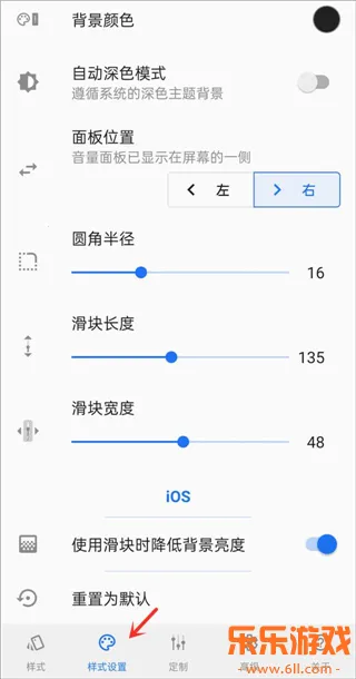 3、点击最下方的样式设置,可以设置样式的背景颜色、模式、面板位置、半径、长度、宽度等等,大家可以自己探索一下。