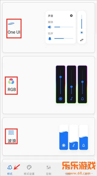 1、安装完成打开后,选择最下面的样式设置,可以看到各式各样系统的音量调整画面。