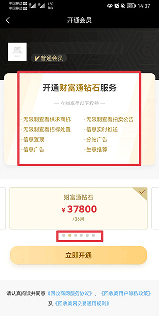 3、选择自己想要升级的会员服务后,点击立即开通。