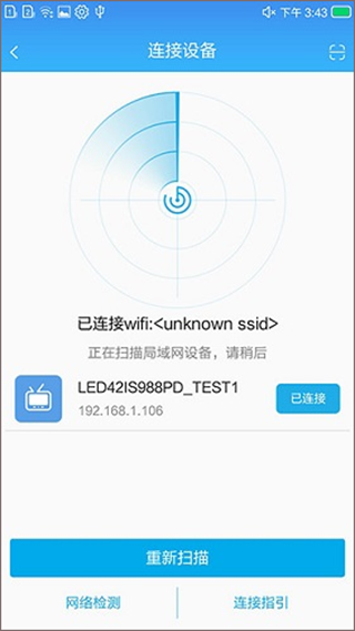 步骤五:在连接页,找到电视IP点击连接,将电视和手机连接起来