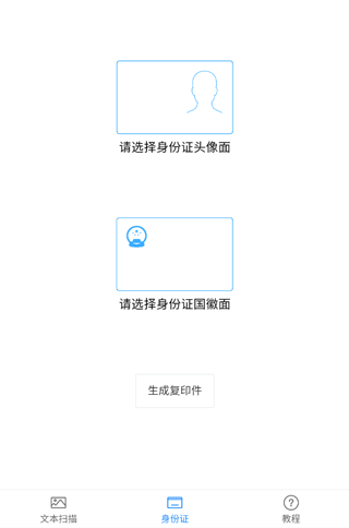 3、再点击【请选择身份证国徽面】,上传国徽页,点击【生成复印件】。