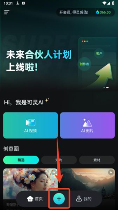 1、用户打开登录app后即可点击底部的添加按钮添加视频生成所需要的素材