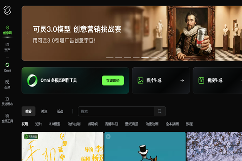 方法非常非常简单,操作步骤如下;步骤一,打开电脑版可灵,单击左侧的“图片生成”,如下图所示;
