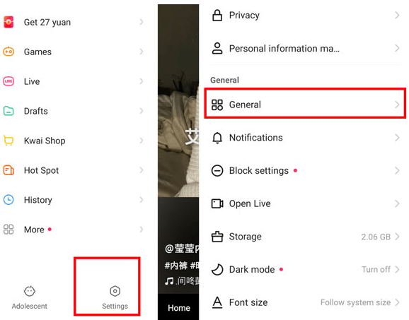 打开kwai后,点击右下角的“Settings”,然后选择“General”;