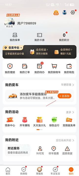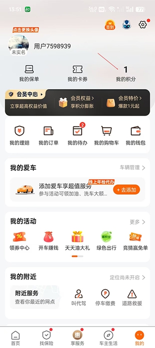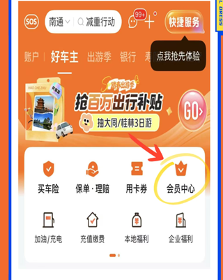 第一步:登录“平安好车主APP”,点击首页会员中心
