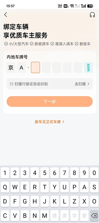 2、然后输入你的车牌号就行了,还支持扫描自动识别。