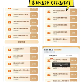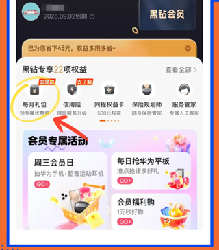 第二步:点击“每月礼包”,选择喜欢的卡券兑换