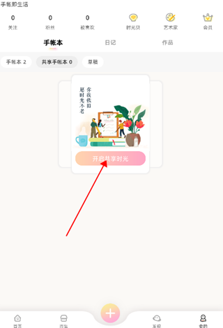 1、首先打开时光手帐app,在【我的】频道中选择【共享手帐本】按钮。