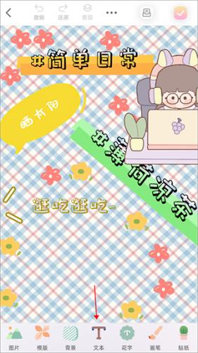 3、点击文本,因为是做示范,小编就随便输入点东西,编辑完后,点击右上角。