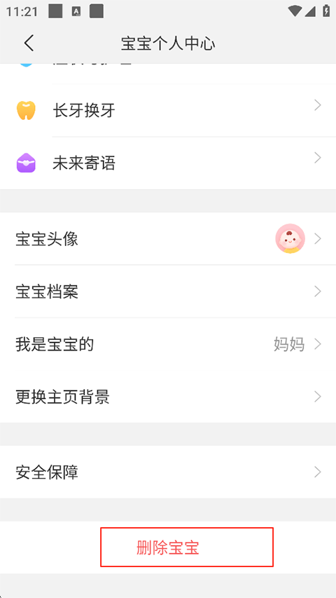 1、通过底部菜单栏进入宝宝记个人中心页面,点击宝宝管理选项;