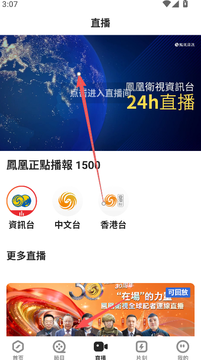 1.凤凰卫视同步直播 – 凤凰卫视中文台、资讯台、香港台 全天候24小时电视精彩内容同步直播。