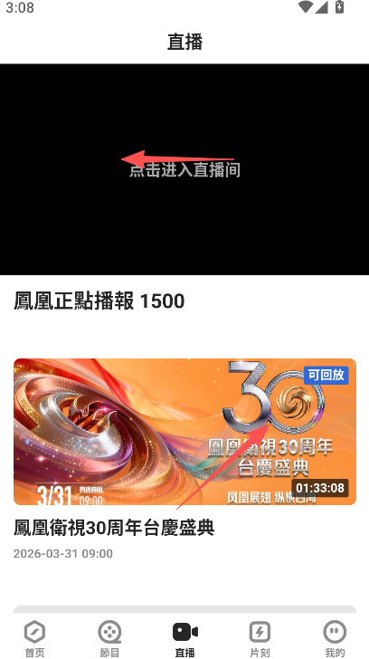 1、凤凰秀app有专门的直播频道,这里我们点击下方的栏目,然后可以看到很多直播内容。