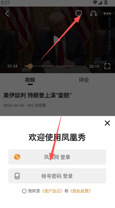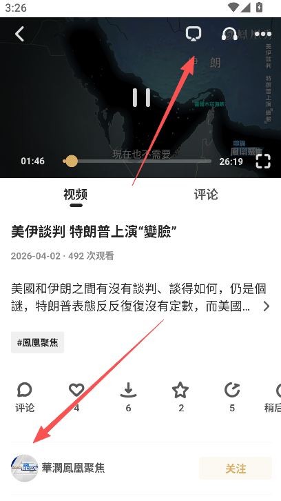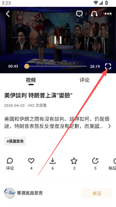 1、凤凰秀直播内容开始以后,点击画面内的投屏功能图标。