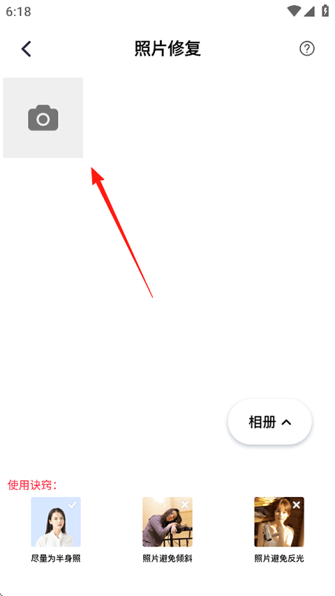 2、上传需要修复的照片;