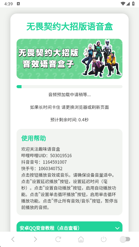 无畏契大招版语音盒app是一款极具趣味性的语音盒子,通过这款盒子大家都是能够获取到不错的语音盒子玩法的,您可以在上面快速播放出无畏契约角色的大招语音,恶搞一下队友以及给短视频配音等等,功能都是比较实用全面的,有需要的朋友现在就来下载使用吧!