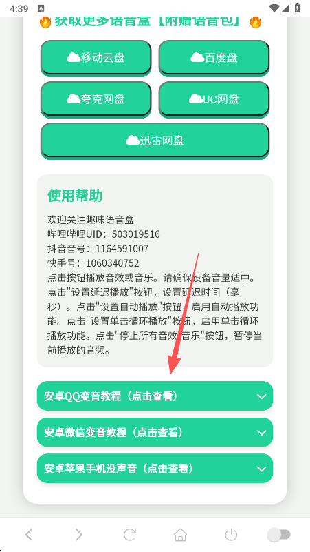 4.往下翻,还会看到三种变音教程,随机点击一种变音教程后面的点击查看为例。