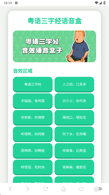 三字经语音盒子给大家带来了,这也是趣味语音合集里的一款应用,在这个应用上面您可以获取到非常有趣的三字经音效,其中的音效也是使用地方口音来读的,整体上也是一种提升了趣味性的方式,可以直接为大家带来不错的体验,有兴趣了解更多的朋友现在就来下载使用吧!