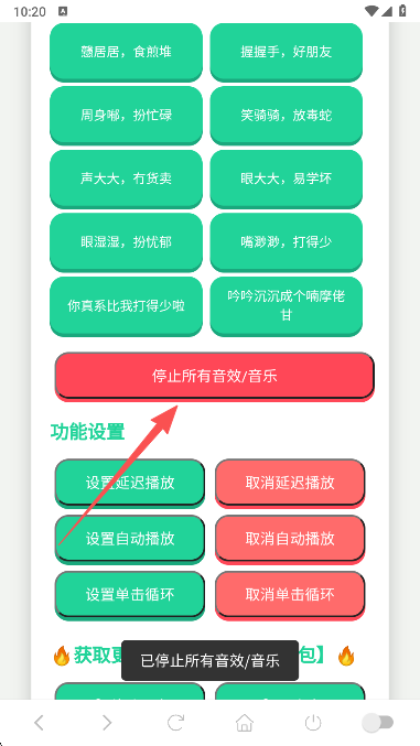 3.播放过程中,若需停止所有音频,点击“停止所有音效/音乐”按钮即可。