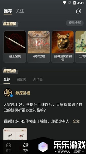 3、发现精选的动态,各种藏家秀、AI作画等;