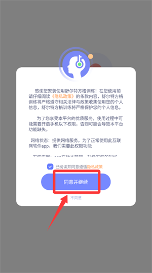 1、启动应用后,勾选同意隐私政策后点击同意并继续。