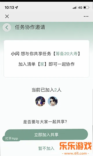 4. 支持任务共享,能和家人同事等一起共享任务,一键邀请超方便,协作更高效。