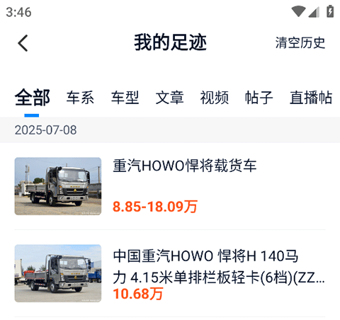 2、在我的足迹页面可以查看您最近浏览的二手车浏览记录。