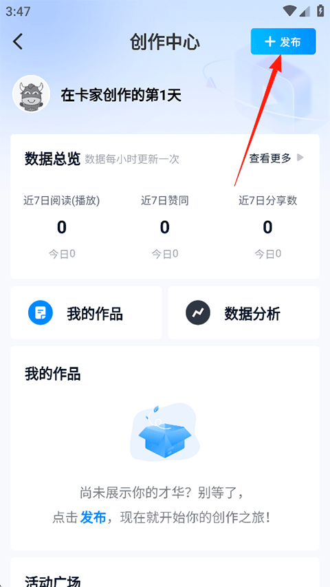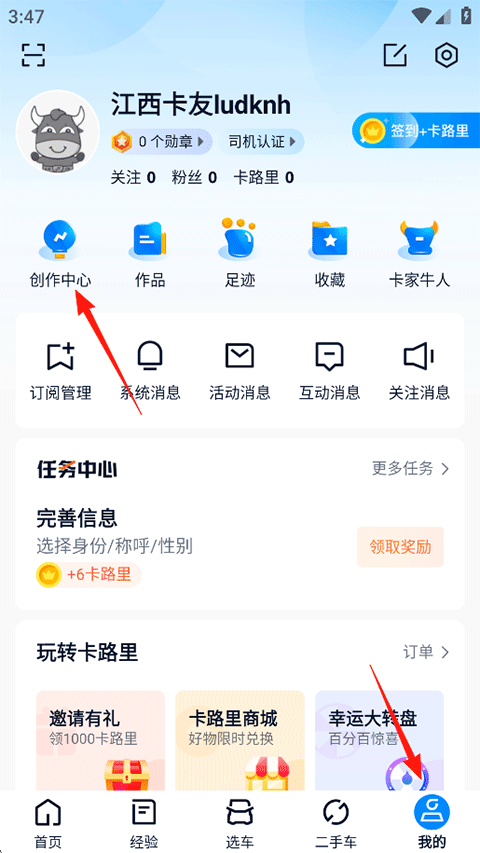 1、点击我的-创作中心;