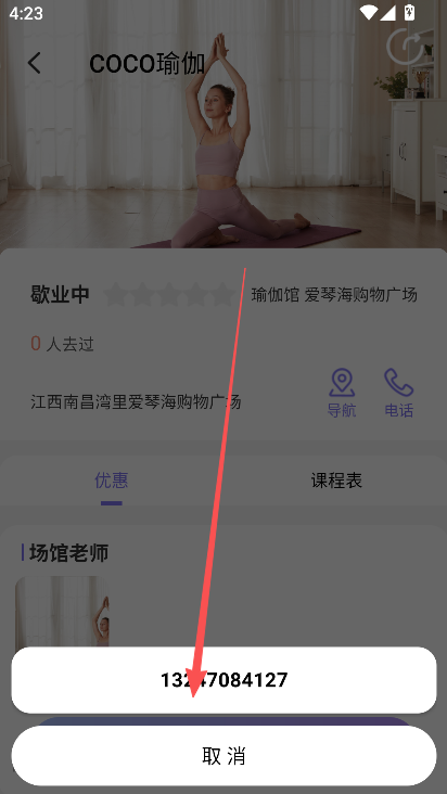 3、拨打电话以后,然后确定场馆的课程预约完成。