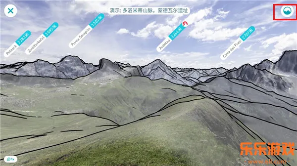 3、点击右上角还可以切换山脉的形态,如图所示,这是地图的二维形态