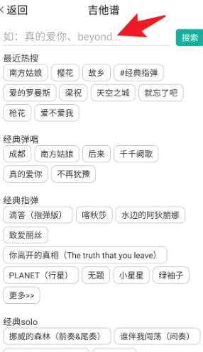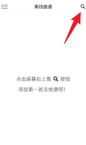 1. 打开应用后,在首页点击右上角的「放大镜」搜索按钮,即可进入吉他谱搜索页面。