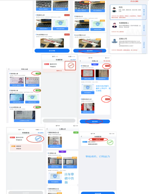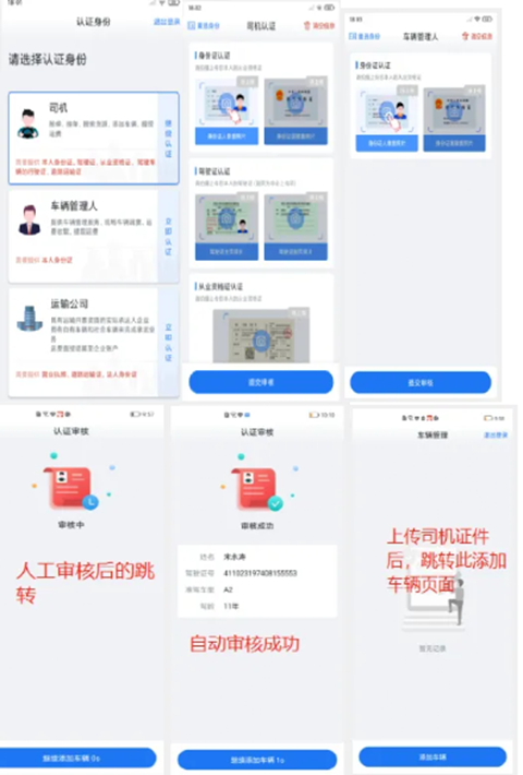 人工审核:平台审核成功后,绑定运力,司机可以进行扫码接单、货源抢单等操作