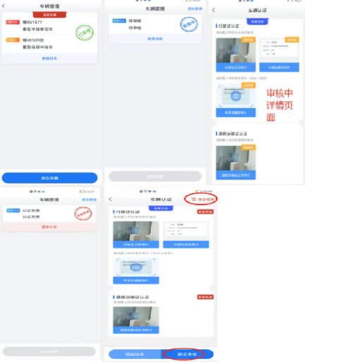 (4)车辆审核失败:重新上传清晰的证件,点击提交审核并等待审核