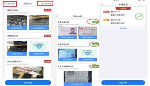 添加车辆:上传车辆证件,牵引车必须上传挂车证件