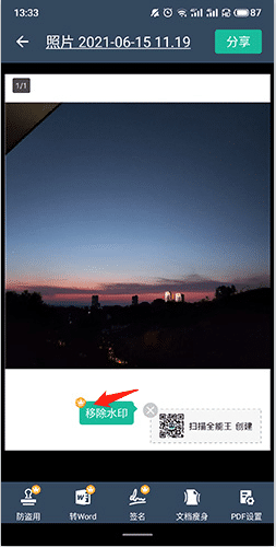 3、点击“移除水印”选项即可。
