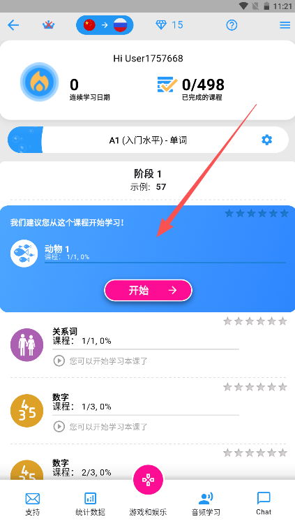 使用Qlango,您只会学习特定级别(例如 A1)的单词和例句。这是Qlango的主要目标之一,因为其他程序一开始就教授更高级别的单词,这会让用户感到困惑。