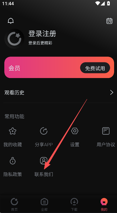 1、在进入软件首页以后,点击下方我的,然后选择联系我们。