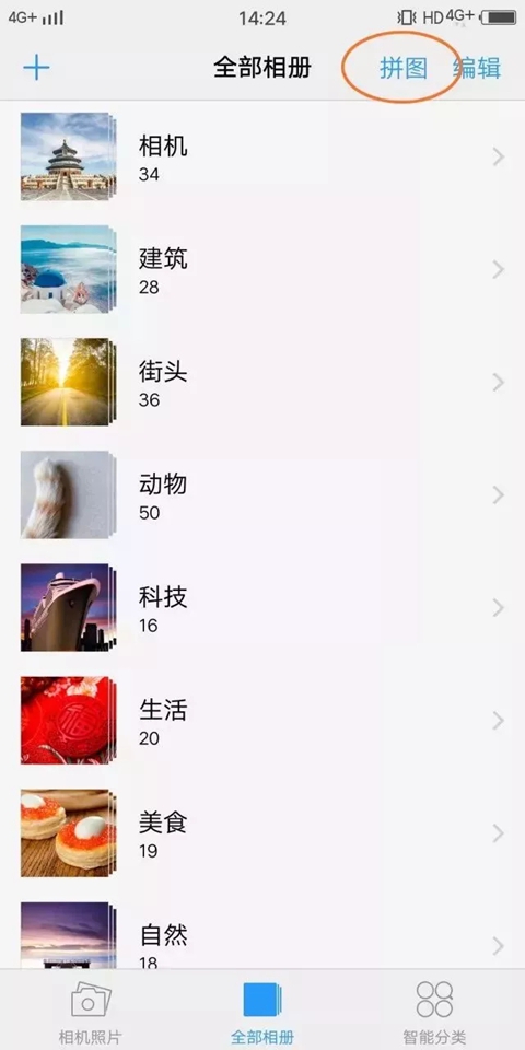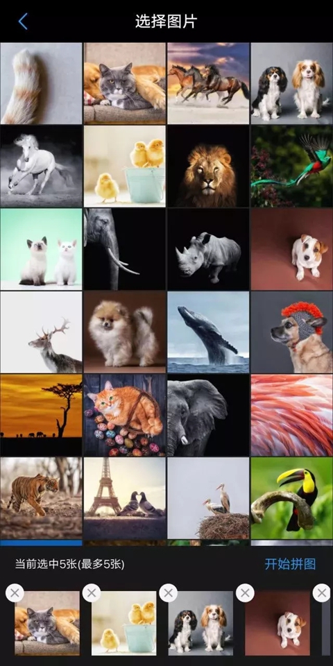 进入相册,点击界面中的「拼图」,选择你想拼在一起的照片并点击「开始拼图」进入拼图编辑界面,你可以在这里选择不同的拼图风格,海报、杂志等风格任你选。