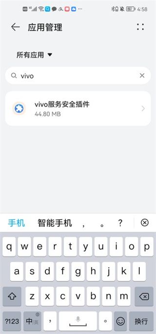 在应用列表中找到「vivo服务安全插件」(可能显示为「VIVO安全服务插件」或类似名称)。